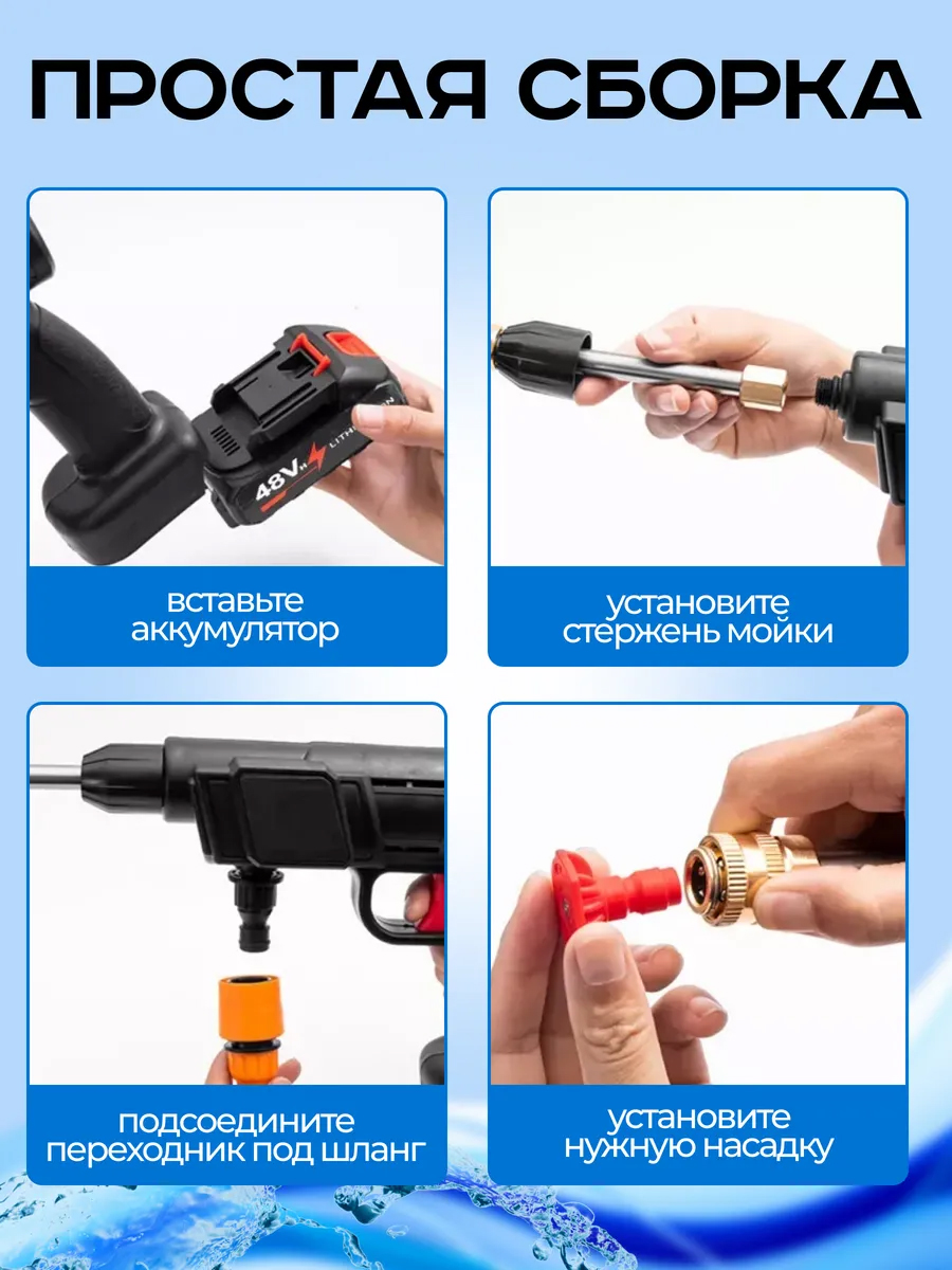 Легкая, компактная и удобная автомойка высокого давления с простым управлением делает процесс мытья максимально комфортным. Мы используем только качественные материалы и комплектующие, чтобы обеспечить долгий срок службы вашей автомойки аккумуляторной высокого давления.