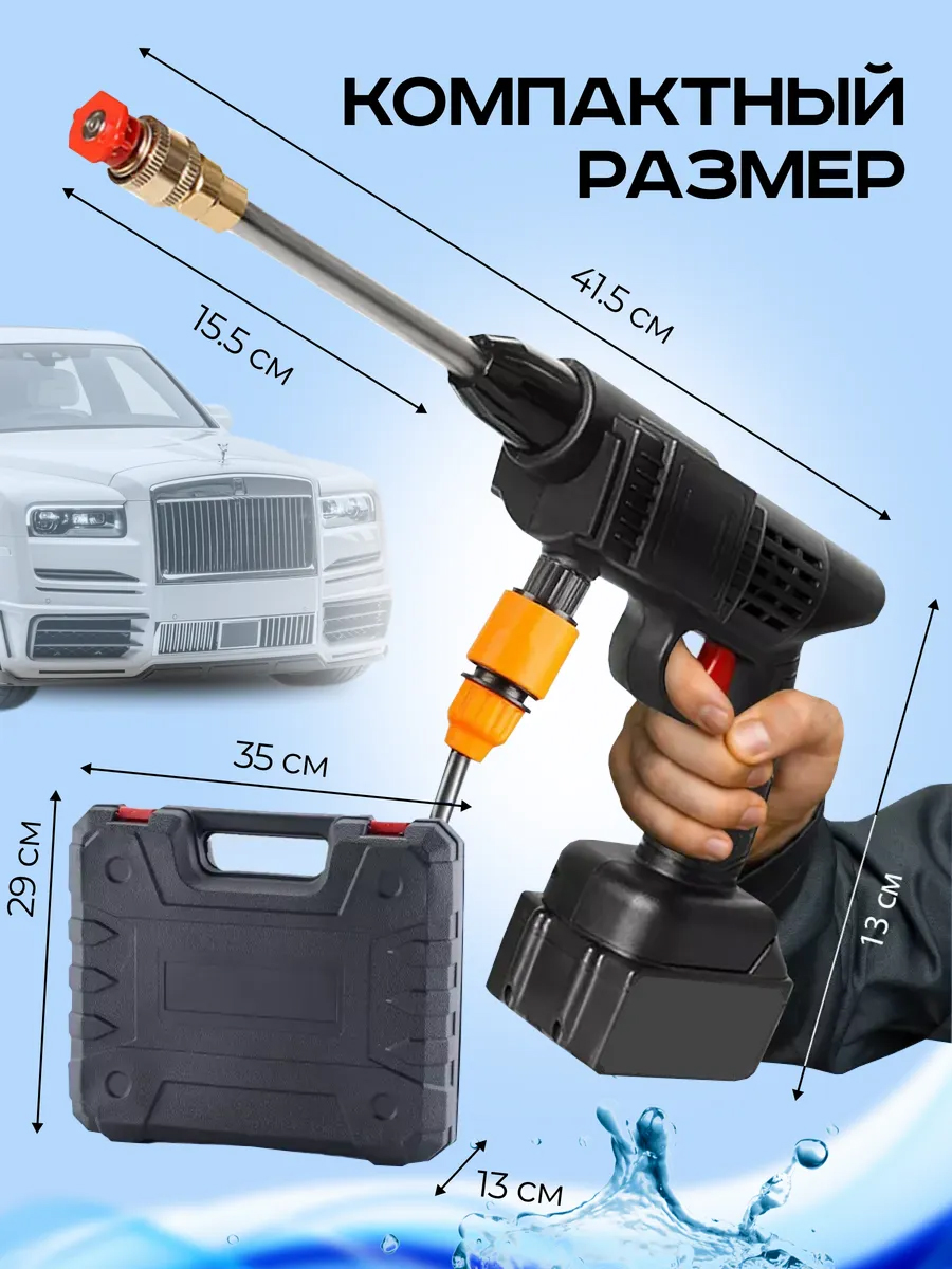 Несмотря на компактный размер, наш пистолет мойка обеспечивает достаточную мощность для эффективного удаления грязи и пыли. Этот набор для мойки автомобиля идеально подходит для различных задач – от мытья автомобиля и мотоцикла до полива растений и чистки террас.