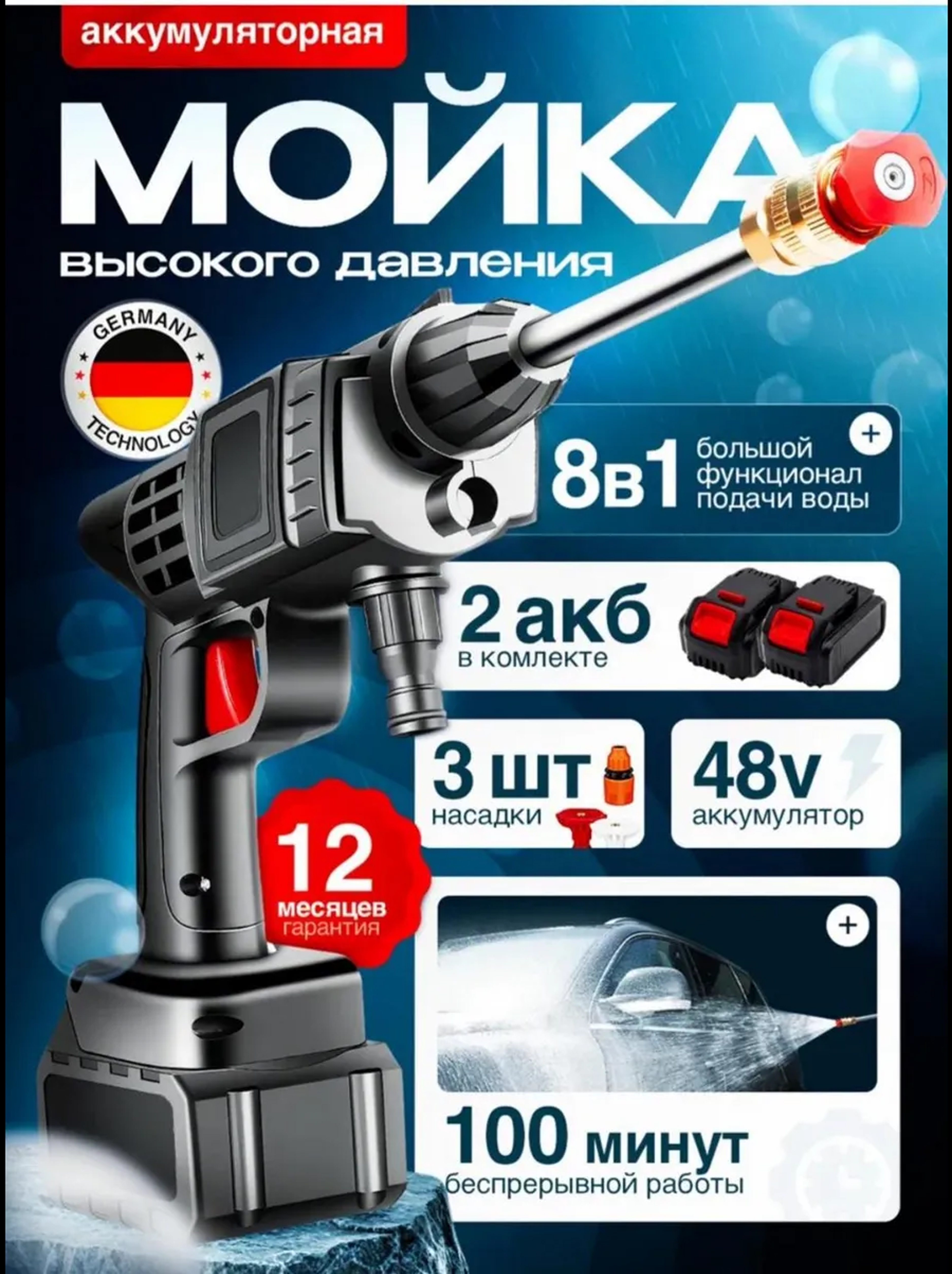 Легкая, компактная и удобная автомойка высокого давления с простым управлением делает процесс мытья максимально комфортным. Мы используем только качественные материалы и комплектующие, чтобы обеспечить долгий срок службы вашей автомойки аккумуляторной высокого давления.